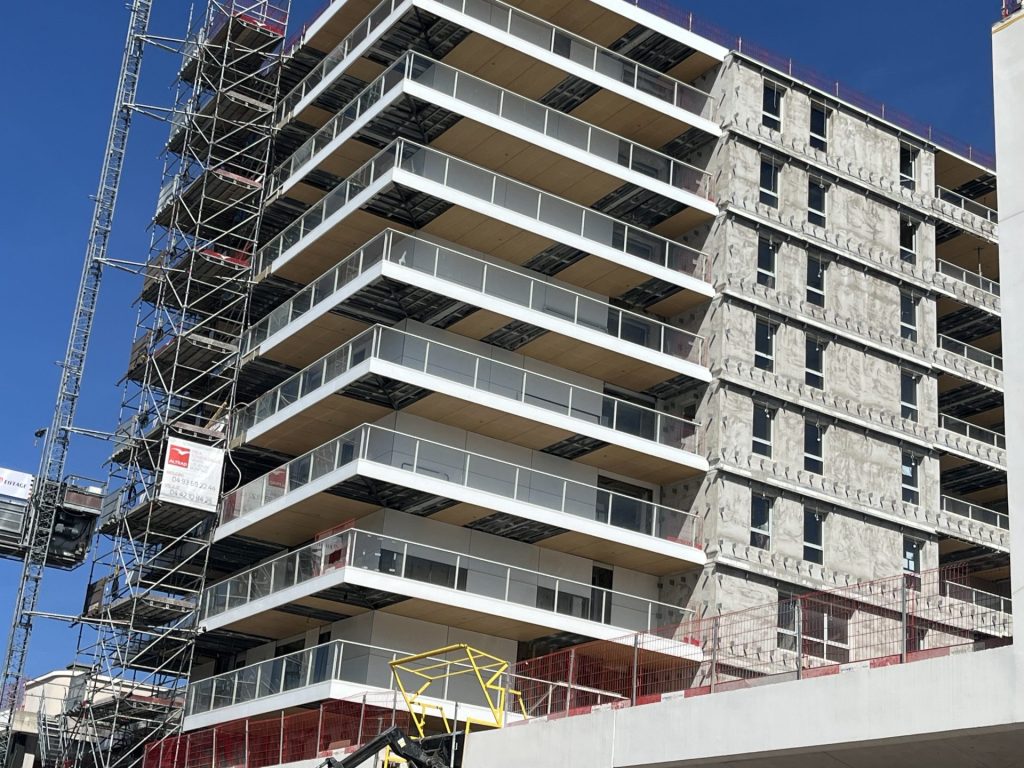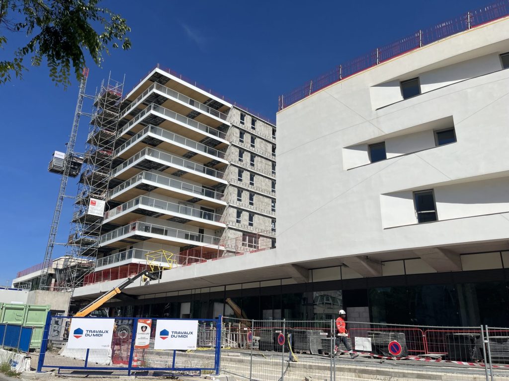 Pour ce projet, s’est rajouté à cette restructuration la construction de 3 bâtiments avec deux niveaux de stationnements en sous-sol et piscine en toiture.
