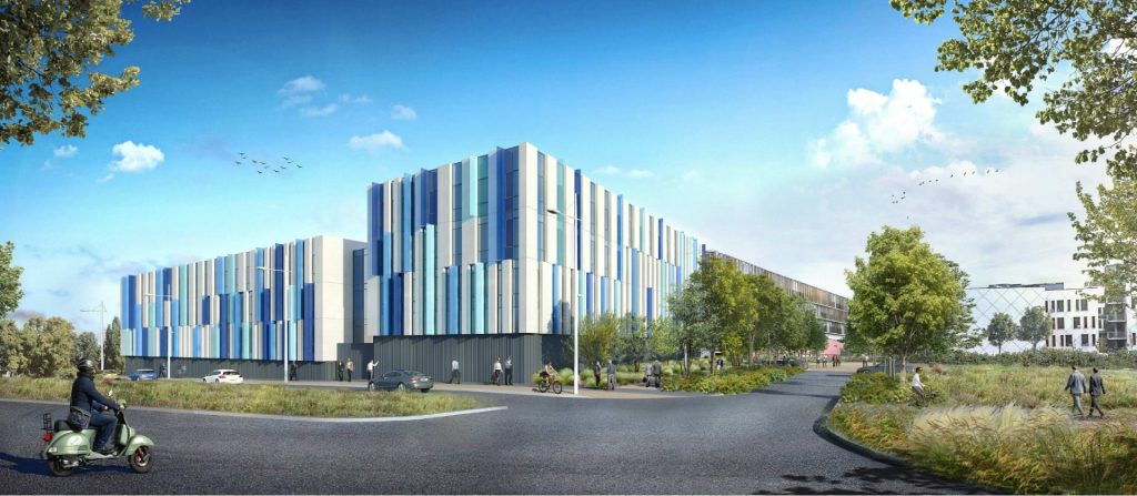 Construction neuve d’un ensemble de bâtiments et extension de bureaux. Trois bâtiment composés d’un niveau en sous-sol et de 4 à 5 niveau de superstructures.